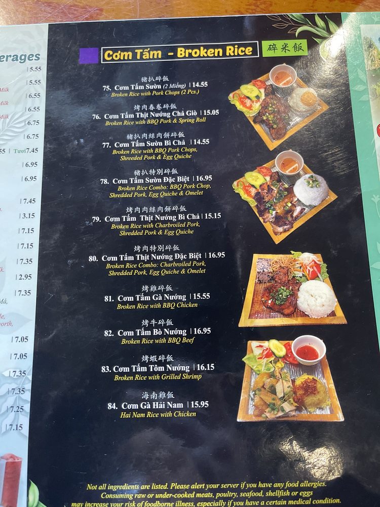 The star of the menu is undoubtedly the Pho. From the rich, tender Beef Shank Pho ($18.05) to the comforting Oxtail Pho ($18.25), each bowl is a symphony of flavors, enlivened by perfectly balanced broth. For noodle soup lovers, the Chopped Chicken With Glass Noodle Soup ($17.15) and Seafood Pho ($18.05) are equally enticing.